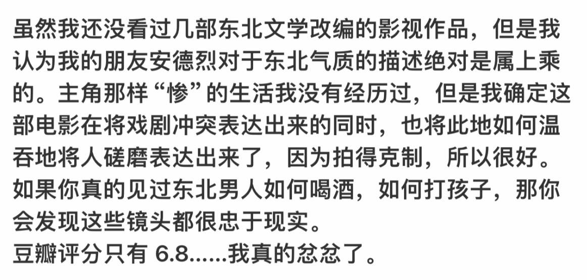 《我的朋友安德烈》的口碑持续向好,这部电影不止在成年观众中广受好评,纷纷发言“让自己看到了过去”;更让不少青少年观众觉得“李默就是我”。这部电影就像以个特别懂你的朋友,能接住那些你在成长过程中可能无法宣之于口的委屈和迷茫。好多年轻人看完都说,第一次感觉自己的那些小心思、小情绪,被这么认真地对待。董子健导演剥离了青春题材常有的滤镜与夸张的戏剧性情节,选择直面成长过程中那些看似微小的迷茫与痛苦,正是这种“将心比心”的拍法,让观众们感觉自己的内心世界被尊重了。