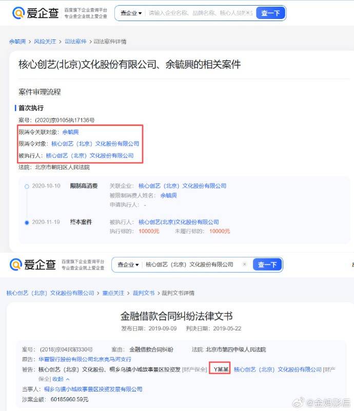 2019年,余被列为全国失信被执行人(俗称“老赖”)。